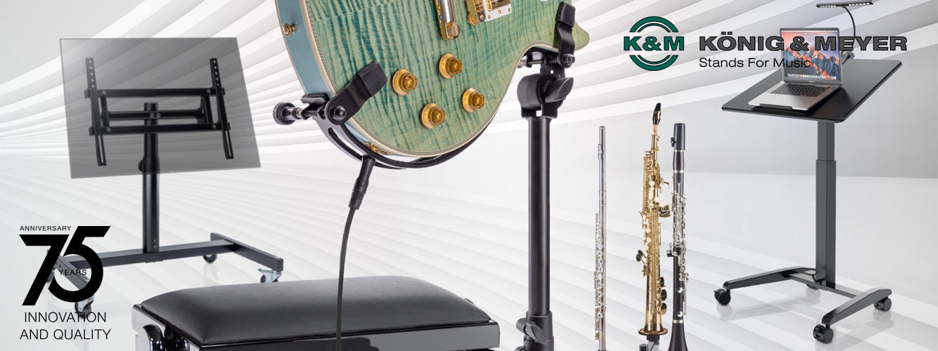 De senaste innovationerna för kreativa rep och scen-framträdanden. Om du repar regelbundet, uppträder på scen eller arbetar i studio vet du att bra utrustning helst ska gå obemärkt förbi. Den bara fungerar, stöttar dig och låter dig fokusera på det som betyder mest: din musik. K&M har utvecklat nya stativ, stolar och tillbehör för att göra den dagliga användningen enklare: ergonomiska, robusta och flexibla – och utformade för musiker i verkligheten. Här hittar du en översikt över de nya produkterna.