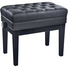 Deluxe pianobänk med notförvaring, svart högglansfinish med quiltad konstlädersits