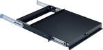 Utdragbar rackhylla med extra rackskenor för stabil montering i bakkant eller sidan av rack. 1HE.