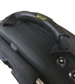 Caset har hjul i bakkant så du enkelt kan dra det efter dej med hjälp av det uppfällbara handtaget.