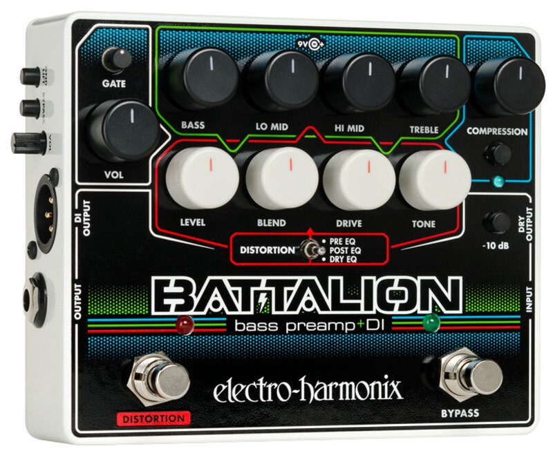 The Battalion Bass Preamp and DI is a compact, flexible pedal that delivers powerful tone shaping capabilities in a rugged pedalboard-friendly package. The Battalion is loaded with features that will appeal to tone conscious bass players and includes a four-band equalizer, fully-featured MOSFET distortion section with three signal path options, a compressor, a noise gate and comprehensive I/O.