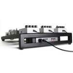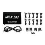 Each of the MOP-D10’s outputs is center-negative and all output power jacks are isolated from each other. The dimensions of each output connector are 5.5mm x 2.1mm. The unit is supplied with a 6′ detachable power cord and ten 24″ long DC power cables equipped with one straight and one right-angle end. It also includes hardware for pedalboard mounting.