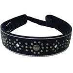 Artikelnummer 3422919Axelband, konstläder, nitar i mässingsfinish, något sliten look, till bas & gitarr, svart.