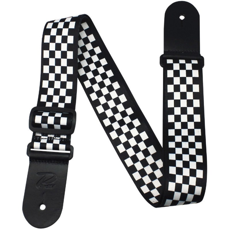 Artikelnummer 3421018Axelband i polyester till bas & gitarr, ändar i italienskt läder, slitstarkt, schackmönstrat.