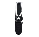 Artikelnummer 3421010Axelband i polyester till bas & gitarr, ändar i italienskt läder, slitstarkt, Stripes Black-motiv.