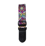 Artikelnummer 3421013Axelband i polyester till bas & gitarr, ändar i italienskt läder, slitstarkt, Modern Paisley 2-motiv.