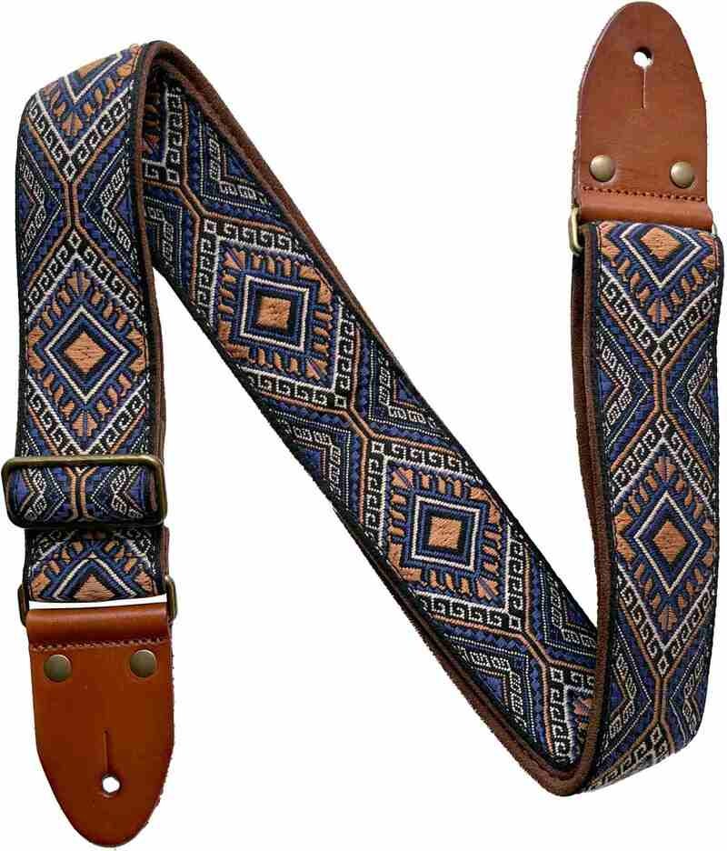 Axelband med Jacquard-vävd ovandel med baksida av mocka, och ändar i brunt, Italienskt läder. Steglöst justerbar längd för att du ska kunna hitta den perfekta spelhöjden på din gitarr.