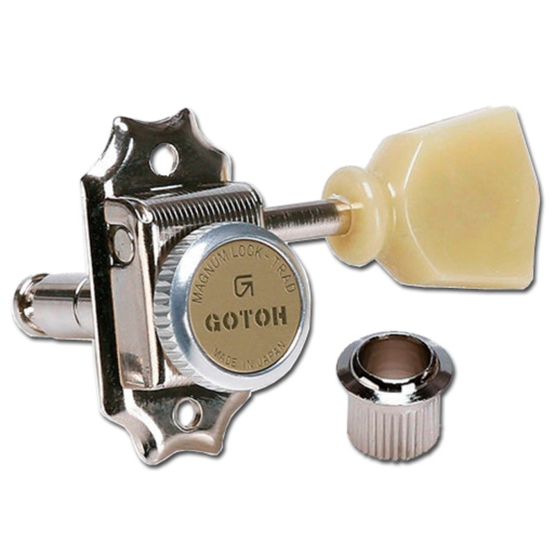 Locking Tuner set for electric guitar. 3 left, 3 right. Nickel.