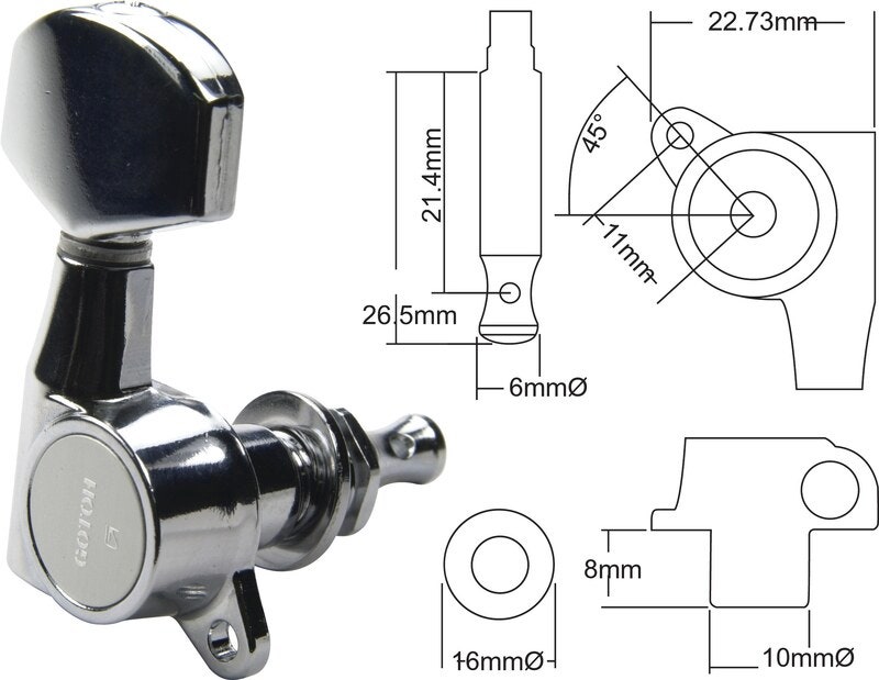 Stämskruv för gitarr. 3 Vänster, 3 höger. Krom.