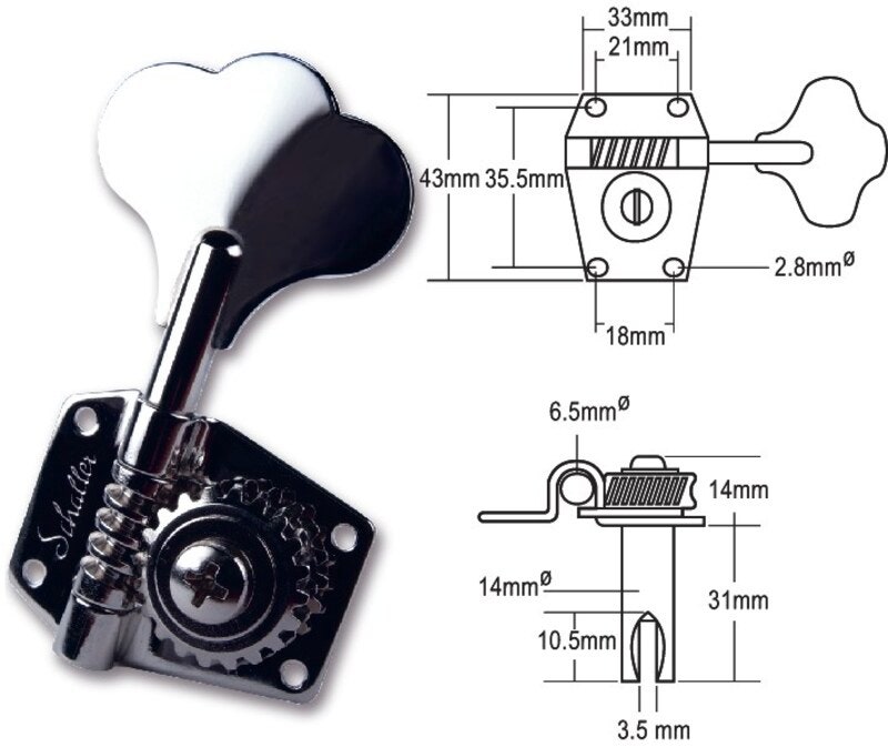 Vintage style tuner för bas. Öppen typ. 2 vänster, 2 höger. Krom.