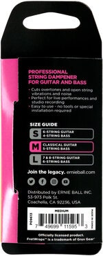 En oumbärlig tillgång när strängar behöver dämpas t ex vid inspelning eller när det är tapping på greppbrädan som gäller. Skjut ditt Fretwrap över strängarna för att ta bort ovälkomna övertoner och lösa strängar som du inte vill ska ringa, med det justerbara bandet bestämmer du hur mycket du vill att strängarna skall dämpas. När du vill få tillbaka dina övertoner och vill nyttja de öppna strängarna skjuter du bara upp ditt Fretwrap ovanför översadeln och allt är som vanligt igen. Inga modifikationer, installationer eller extra verktyg krävs, Fretwrap dämpar effektivt dina strängar på ett enkelt sätt och finns i tre storlekar för olika sorters gitarrer och basar. Medium - Passar 6-strängad klassisk nylonsträngad gitarr och 5-strängade basar.
