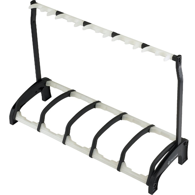 Gitarrställ för 5 instrument, rackmodell, hopfällbart, lätt vikt, stabilt, svart & vit.
