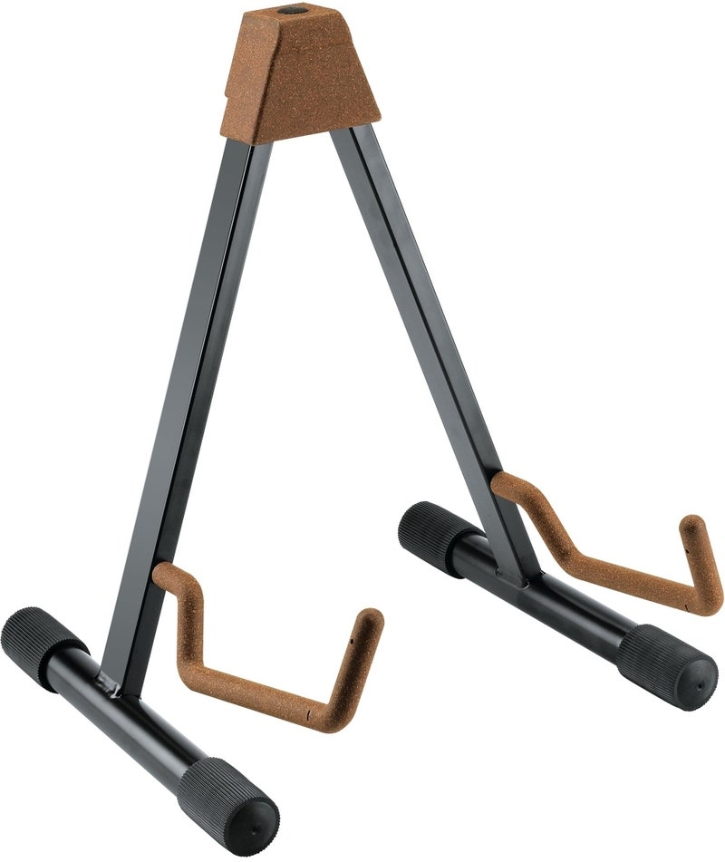 Artikelnummer 25517541-9Gitarrställ för akustisk gitarr, hopfällbart, tillverkat i stål, kork & svart finish.