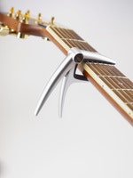 Professional capo for western and E-guitars, in particular for rounded frets. The clamping mechanism is quick and easy to attach using one hand. The capo only weighs 0.038 kg and does not obstruct playing due to its slim and elegant shape. The capo‘s rubber covered brackets stick tightly on the fret ensuring that is does not slip.