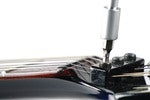 Skruvbits i 10 olika varianter, med andra ändan på verktyget kan man skruva muttrar i sex olika storlekar. Det är 10mm, 12mm, 14mm, 1/4" 1/2” & 7/16 vilket är dom vanligaste storlekarna på muttrar som sitter på gitarrer, basar och förstärkare. Ändan där man sätter i bitsen finns även 1/2" mutterdragare som passar i gitarrer där man har telejacket något försänkt i gitarren. Handtaget är tillverkat i ett mycket slitstarkt nylonmaterial som inte repar ditt instument vid användning.