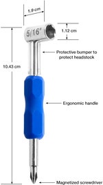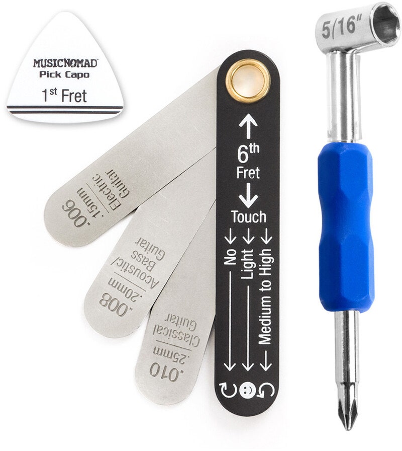 För att enkelt justera halsen på din Gibson och Amerikanskbyggda PRS-gitarr så har MusicNomad tagit fram ett set med dragstångsnyckel och måttsats. Måttsatsen kommer med de vanligaste relief-måtten för elektriska, akustiska gitarr samt även för elbasar, för just Gibson och PRS rekommenderas generellt måttet .006". Dragstångsnyckeln är konstruerad att passa PRS och Gibson eller andra instrument där dragstångshuvudet är 5/16" och där halsen justeras vid huvudet. I andra änden av dragstångsnyckeln hittar man en praktisk magnetisk stjärnskruvmejsel, perfekt när man tar bort dragstångsluckan.