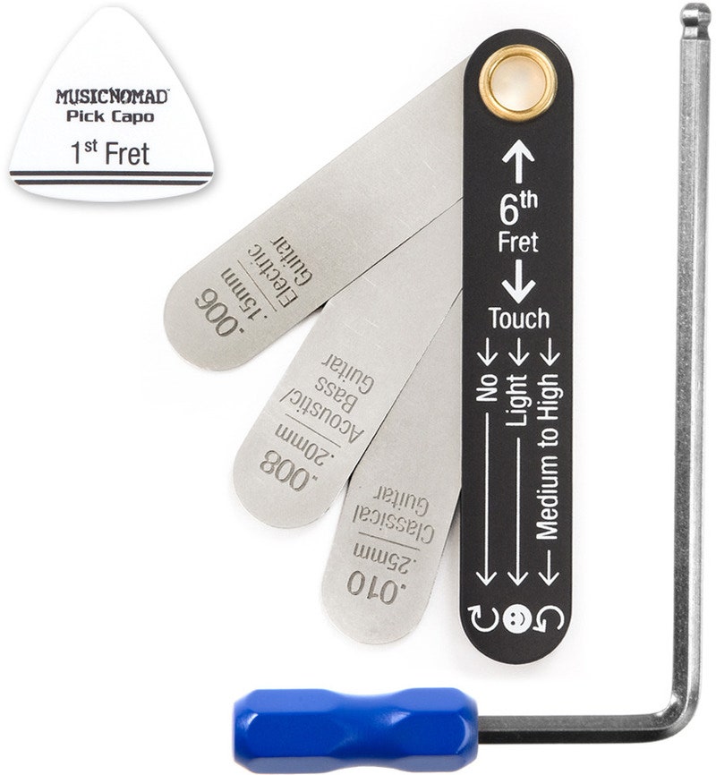 För att enkelt justera halsen på din Martin-gitarr så har MusicNomad tagit fram ett set med dragstångsnyckel och måttsats. Måttsatsen kommer med de vanligaste relief-måtten för elektriska, akustiska gitarr samt även för elbasar, för just Martin rekommenderas generellt måttet .008". Dragstångsnyckeln är konstruerad att passa de flesta Martin-gitarrer eller andra instrument där dragstångshuvudet är 5mm och där halsen justeras via ljudhålet.
