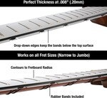 Med detta praktiska och pålitliga skydd behöver du inte maskera greppbrädan med tejp eller chansa och riskera fula märken i trät när du putsar, slipar eller gör andra jobb på din gitarrs bandstavar.