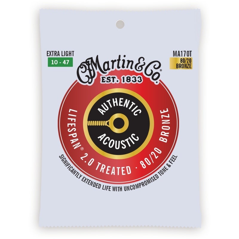 Martin Guitar MA170T Authentic Acoustic Lifespan 2.0 Guitar Strings 80/20 Bronze - Extra Light