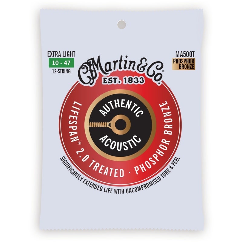 Martin Guitar MA500T Authentic Acoustic Lifespan 2.0 Guitar Strings 92/8 Phosphor Bronze - Extra Light 12-string