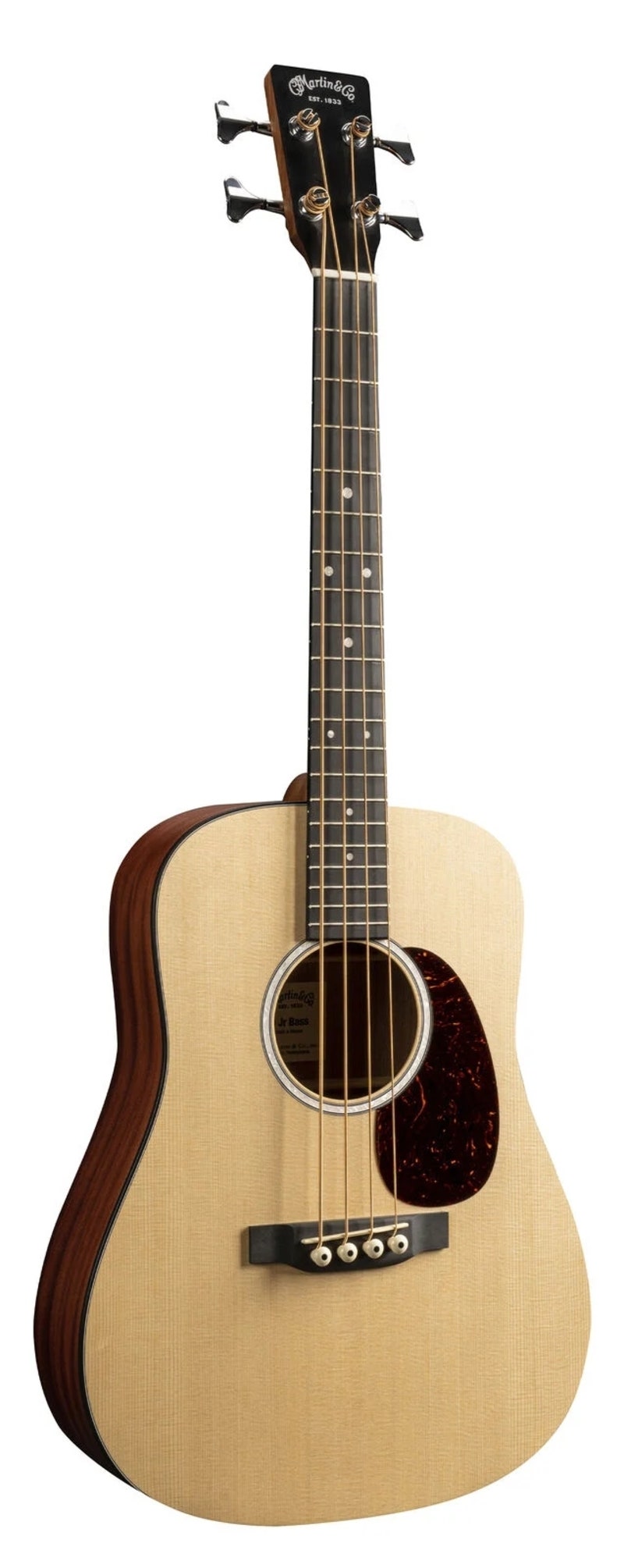 This Martin DJR-10E acoustic-electric bass is ideal if you love to write and practice on an unplugged bass but also need the option to plug it in to record or play live with your band. It includes a spruce top and sapele back and sides to deliver thumping Martin bass tones, whether you are unplugged or using the built-in Fishman® electronics. It also includes a fast, comfortable neck so you can keep the rhythm section tight. The DJR-10E Bass is strung with Martin short scale bass strings that are made specifically for this instrument.