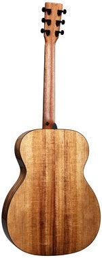 Baksidan och sidorna är tillverkade av laminerad koa medan locket är tillverkat i Sitka gran, resultatet ett vackert instrument i ett klassiskt format. Kroppen har den klassiska 000-designen där halsen möter kroppen vid det 14:e bandet och preampen som 000-12E försetts med är Martin E1 som har kontroller för ton och volym samt en inbyggd stämapparat.