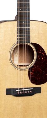 En 000-18 med ett lock i Sitka-gran som har VTS-behandlats (Vintage Tone System) för att ge de egenskaper som normalt endast återfinns hos instrument som kommit till åren redan från första ackordet. En ton som har inspirerarat generationer av gitarrister genom åren. Modern Deluxe-modellerna kombinerar traditionellt gitarrbyggande med modern kunskap och har bl a försetts med Liquidmetal strängstift och ett stall i ebenholts som vilar på en platta i kolfiberkomposit allt för att ge en kraftfullare och starkare ton. Halsarna i Modern Deluxe-serien har en Vintage Deluxe-profil för att ge komfort och maximal spelbarhet över hela halsen.
