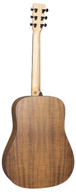 Både lock, sidor och botten är tillverkade i speciellt utvald vacker Hawaiansk koa med Martin-designen i fokus. D-X1E är utrustad med Fishaman's MX preamp som har kontroller för volym och ton som kontrollerar mikrofonen som sitter under stallet och instrumentet kommer med en gig bag.