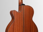 Kroppen har topp, sidor & botten i Mahogny för ett varmt & mjukt sound & är av Takamine's älskade NEX-modell som är en något mindre Jumbokropp, här med cutaway för enklare spel högre upp på halsen.