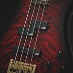 Artikelnummer 1544103Elbas, välvd kropp i Al, lönnhals tillverkad av tre lönnstycken, rosewood-greppbräda, Aguilar OPB-2 aktiv preamp, Aguilar Custom Voiced DCB P/J Pickuper, Black Cherry Finish.