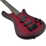 Artikelnummer 1543113Elbas, 4 strängar, kropp i ask med quilt-mönstrad lönntopp, lönnhals, ebenholtz-greppbräda, EMG P/J pickuper, Spector TonePump Jr preamp, Black Cherry Matte.