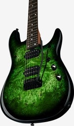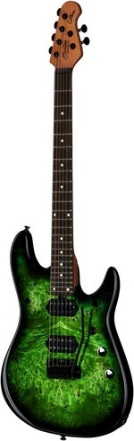 Artikelnummer 1572145Elgitarr, 7-strängad, kropp i al, burl-mönstrad topp i poppel, hals i rostad lönn, greppbräda i rosewood, SBMM JR humbuckers, 12dB volym boost, låsbar mekanik, tremolo