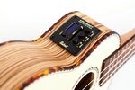 Artikelnummer 4332105The 15-fret Reno RU210E Ukulele has a solid spruce top, and Zebra back and sides. This sweet sounding ukulele is appointed with a Tortoise shell binding and Fishbone rosette. This model also has a built-in Belcat preamp with a chromatic tuner. Natural.