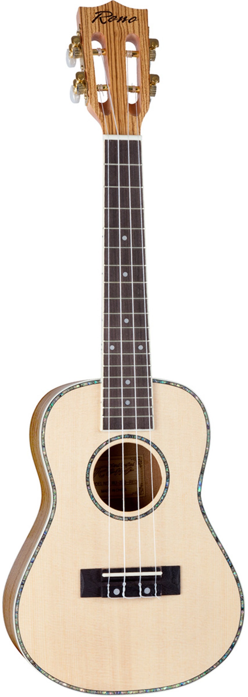 Ukulele i större format än det vanligaste, med solitt granlock och öppen stämmekanik.