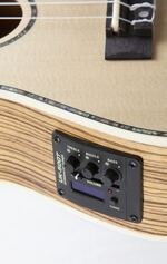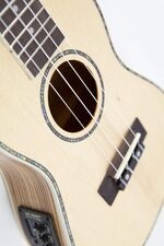 Ukulele i större format än det vanligaste, med solitt granlock och inbyggt mikrofonsystem.