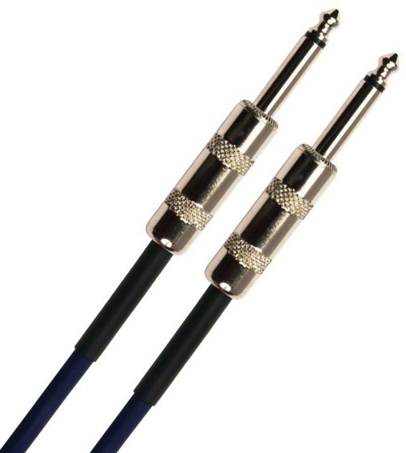 1m lång blå högtalarkabel med 2st obalanserade telekontakter i metall och belastningsskydd.