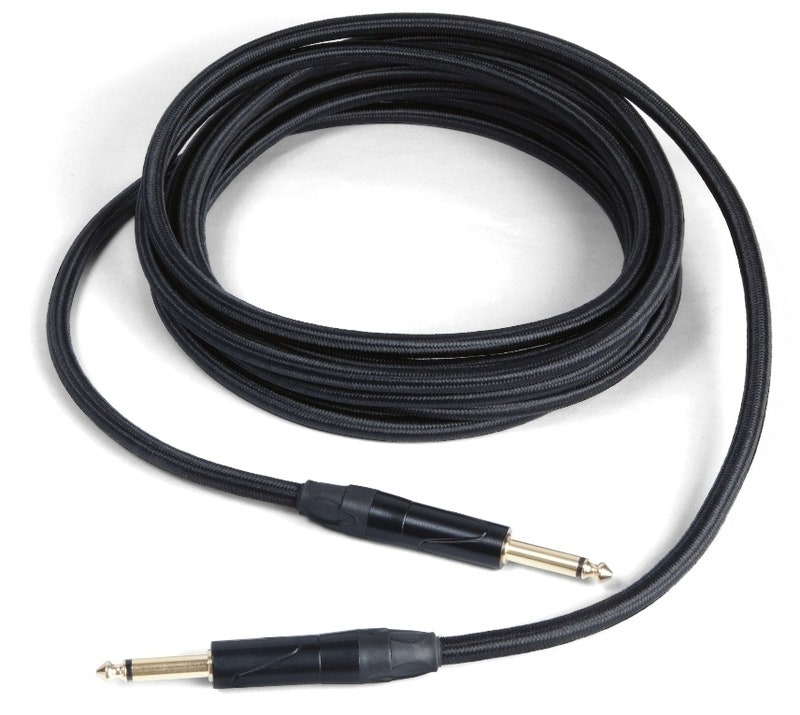 3m lång svart tygbeklädd instrumentkabel med 2st obalanserade, guldpläterade telekontakter.
