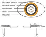 Kabeln är platt för att ta så lite plats som möjligt, ex. vid bygge av pedalbord.