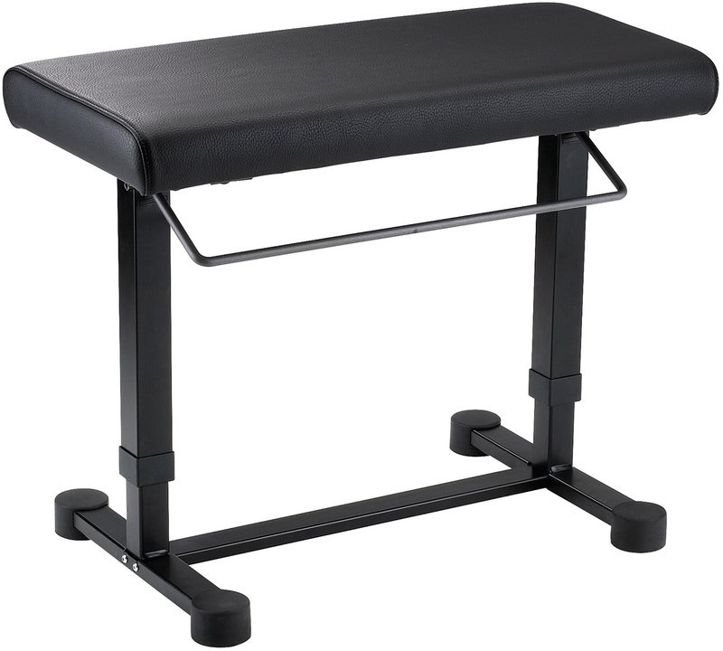 Avancerad pianobänk med hög komfort. Höjden justeras enkelt med handtaget på långsidan medan man fortfarande sitter på bänken. Svart läderimitation.