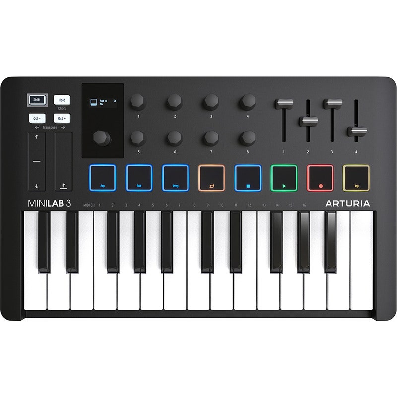 MIDI-klaviatur, 25 anslagskänsliga minitangenter, svart, USB, program ingår.