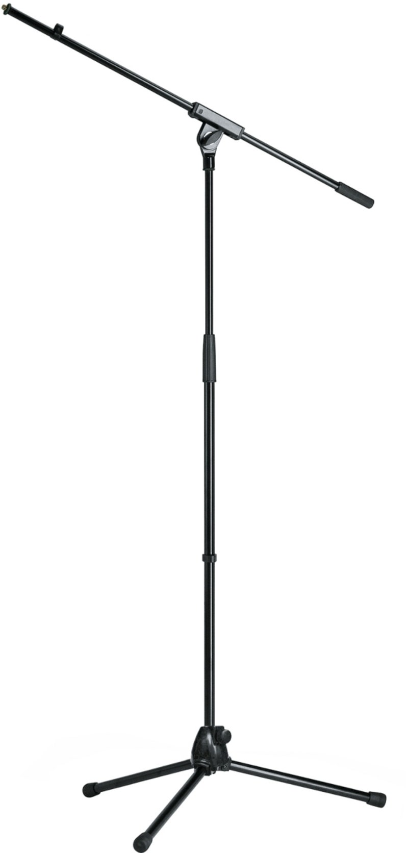2-delat mikrofonstativ med hopfällbara ben och bom. Svart.