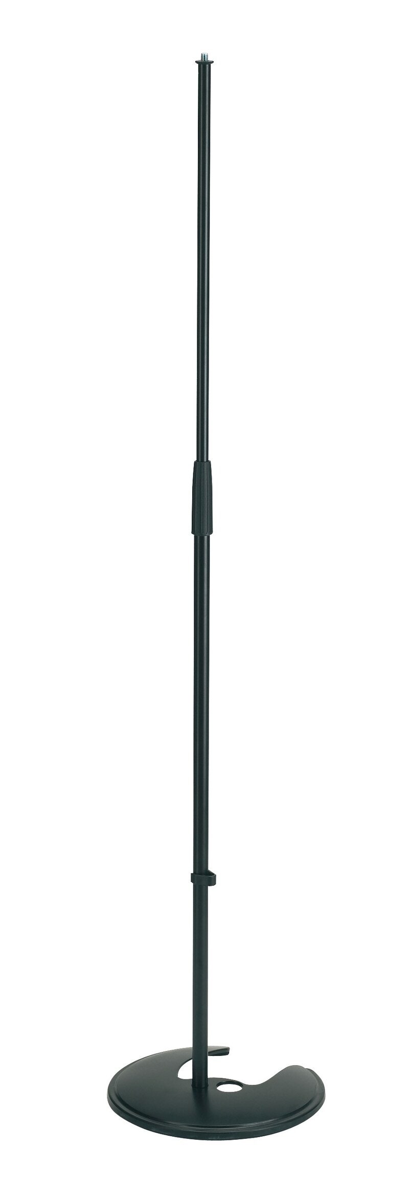 Artikelnummer 255260452-delat mikrofonstativ med gjuten rund fot i cutout-utförande som möjliggör stapling av upp till fem stativ. Svart.