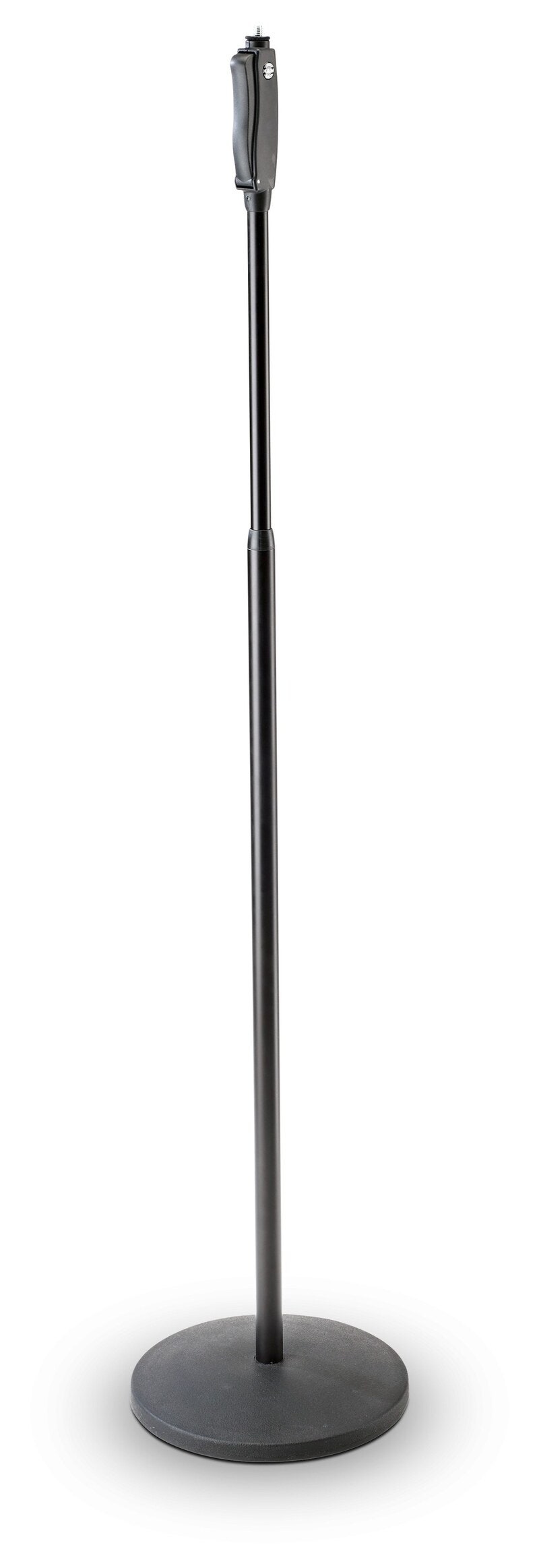 Elegant och stadigt 2-delat mikrofonstativ med rund fot. Höjden justeras enkelt och ljudlöst med ett enhandsgrepp. Den integrerade låsskruven för mikrofonhållaren är omöjlig att förlora och underlättar åtdragning av mikfrofonhållaren.