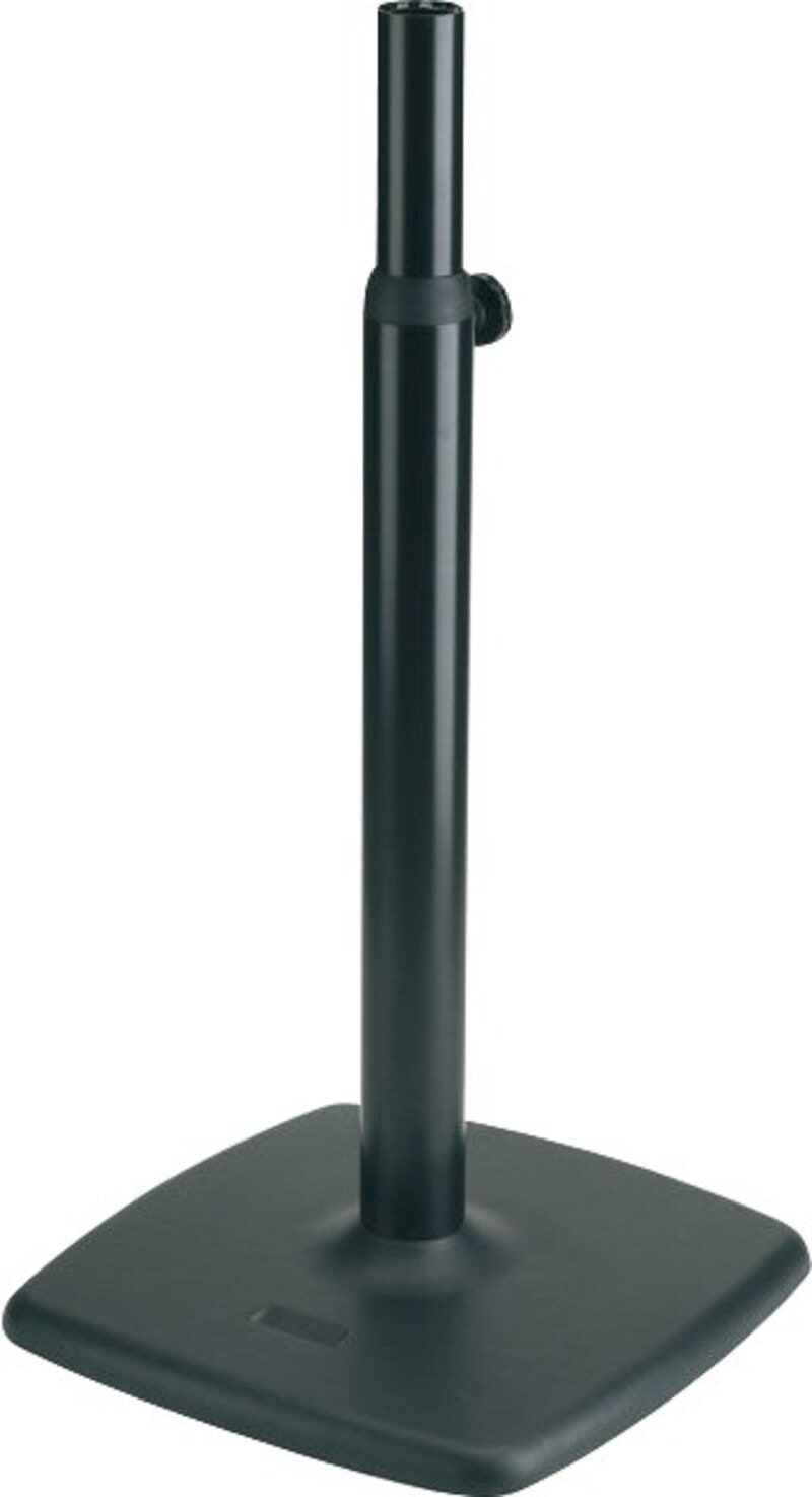 Stålstativ med stabil och elegant 480 x 480 mm fot för högtalare. Bekväm höjdjustering och inställning av bärplåten (artnr. 26792) som högtalaren står på. Tre storlekar för matchning av högtalarstorlek.