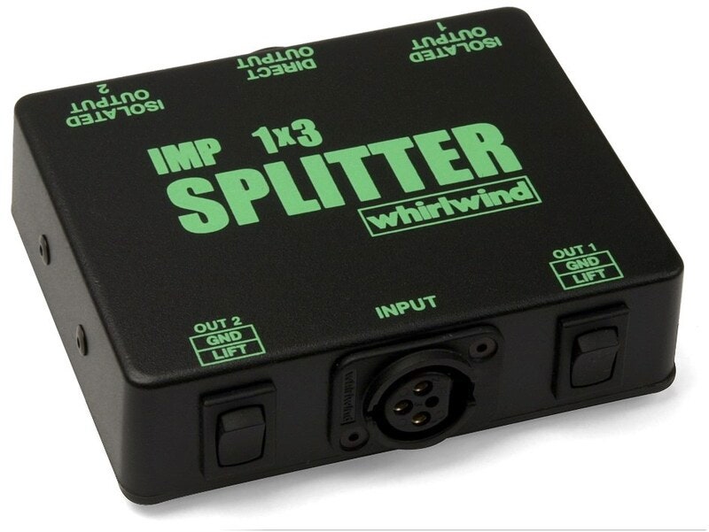 Split-box för mikrofon, D3F-ingång till 3 st balanserade D3M-utgångar varav en överför ev. fantommatning.