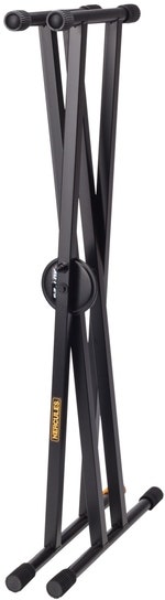 Dubbelstagat krysstativ med patenterad låsningsmekanik för säker höjdinställning.