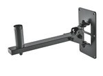 Robust wall mount for holding speakers with flange socket up to 25 kg. The swivel range is continuously adjustable up to 120°. The tilt can be fixed in three steps with 0°, -12.5° and -25°. A patented expanding mandrel ensures a wobble- and vibration-free fit of the speaker. The solid steel construction and durable powder coating ensure long-lasting use.