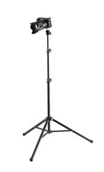 Useful camera tripod for mounting compact cameras, action cameras, web cams, mini-projectors and mobile recorders with a 1/4" connection thread. The ball joint allows the mounted equipment to be rotated 360° and fixed in any position. The tilt-angle is infinitely adjustable up to 90° and the load capacity is designed for equipment up to 1 kg. The height can be freely adjusted from 555 mm to 1355 mm via two extensions. For transport, the tripod folds compactly to save space.