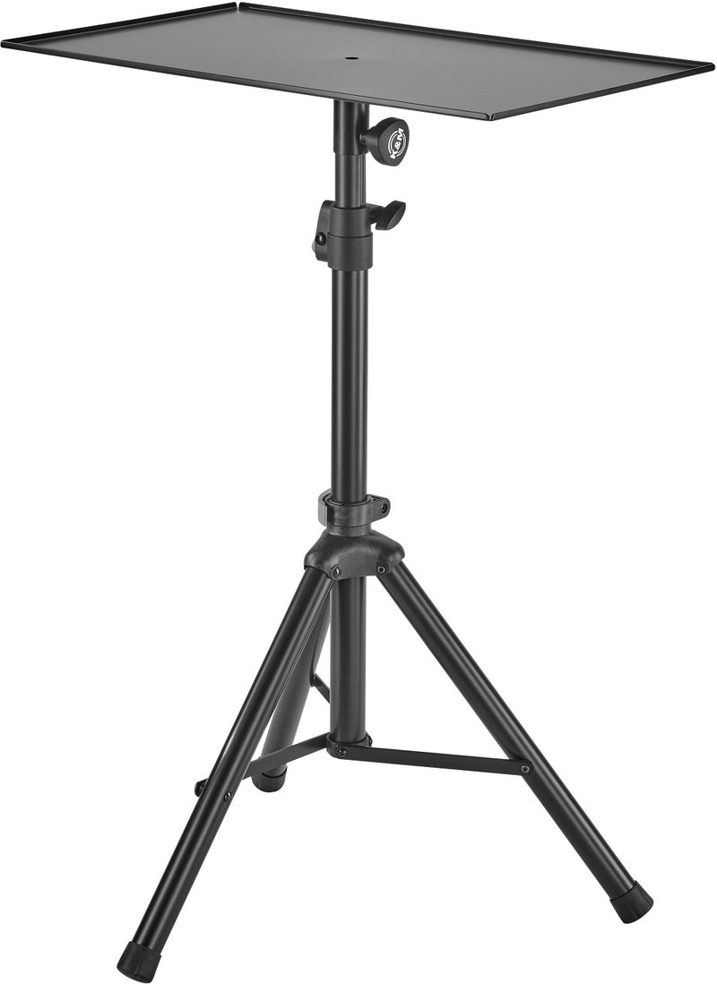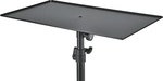 Useful universal stand as a combination of the speaker stand 21454 and the tray plate 26752. The stand enables comfortable use of mixers, controllers, laptops, etc. The adjustable height ranges from 1,000 to 1,450 mm and the dimensions of the spacious steel plate are 727 x 404 mm.