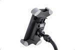 With this universal smartphone stand, your smartphone is always within reach. In height, the stand covers a range of use from 600 to 1,400 mm. The holder is suitable for all flat devices with a width of 55 to 85 mm. The operation is quick and easy. A quick-release button on the back with latching mechanism unlocks the rubberized clamps and the smartphone can be easily removed. Thanks to the flexible ball joint, the holder can be tilted up and down and rotated 360°. The flexible holding arm with a length of 100 mm provides additional individual positioning.